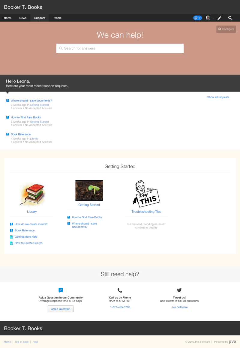 Here's a sample of how you might set up Support Center for an external community for an online bookselling company.